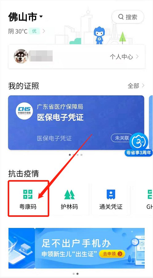 第一步:用手机扫描或长按扫描粤省事小程序码。