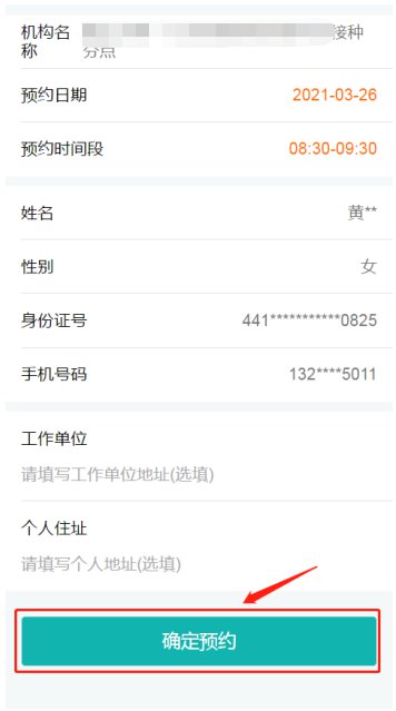 4、确定预约信息提交成功