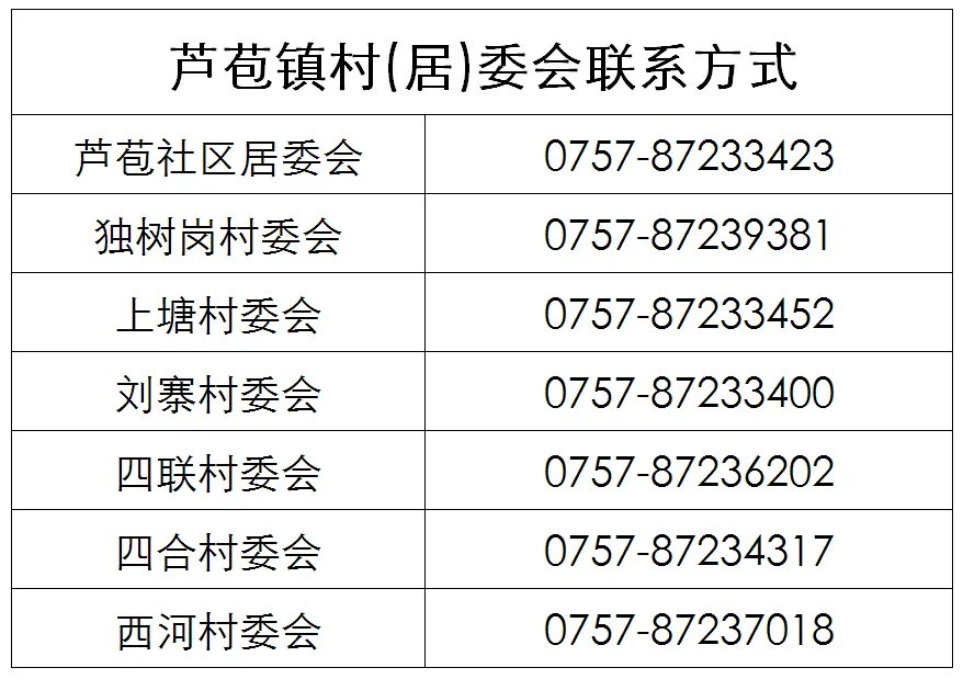 附:芦苞镇各村居委会联系方式,欢迎市民群众咨询。