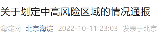 2022年10月11日起北京海淀区新增中高风险区情况通报