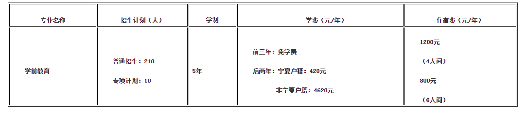 前三年免学费,后两年宁夏户籍考生学费减免4200元/学年。