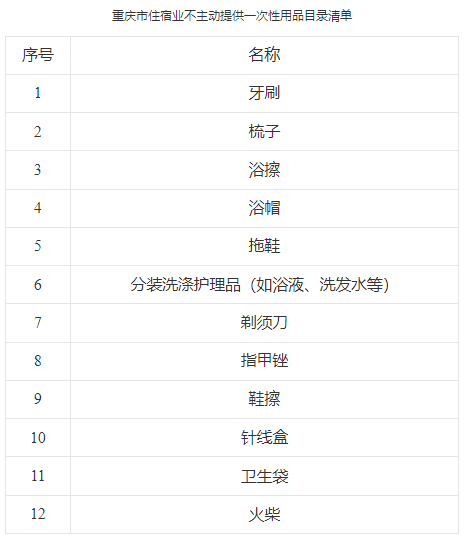 2.重庆市住宿业不主动提供一次性用品目录清单