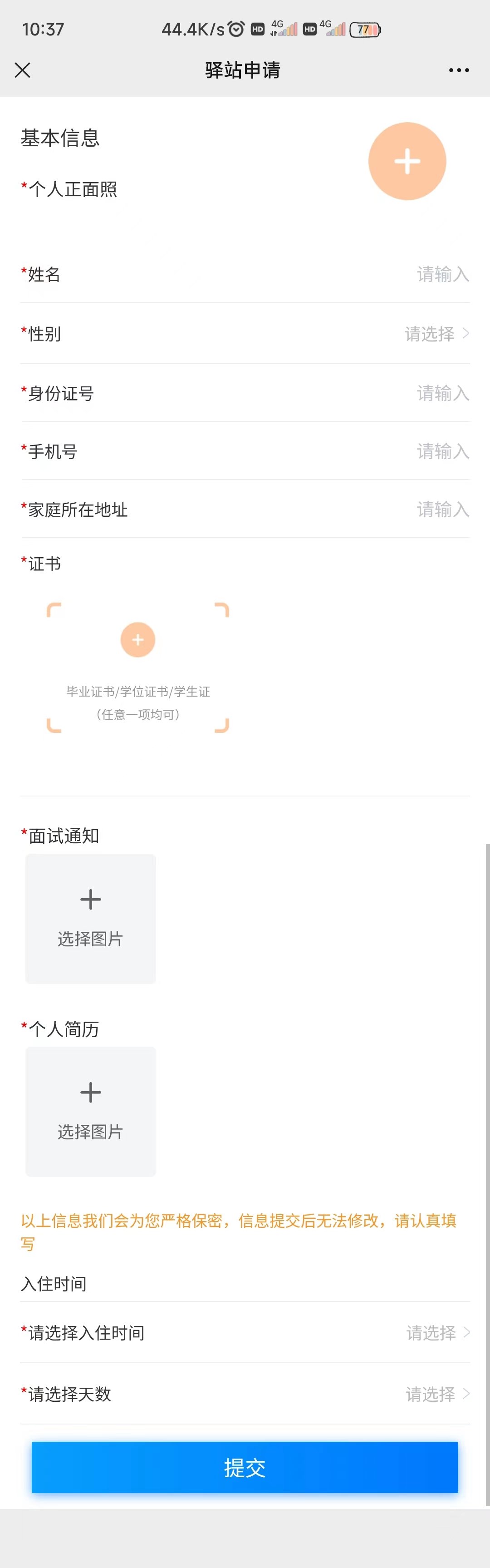 1、每名青年只有一次申请入住机会,提交申请前请确定好申请时间。