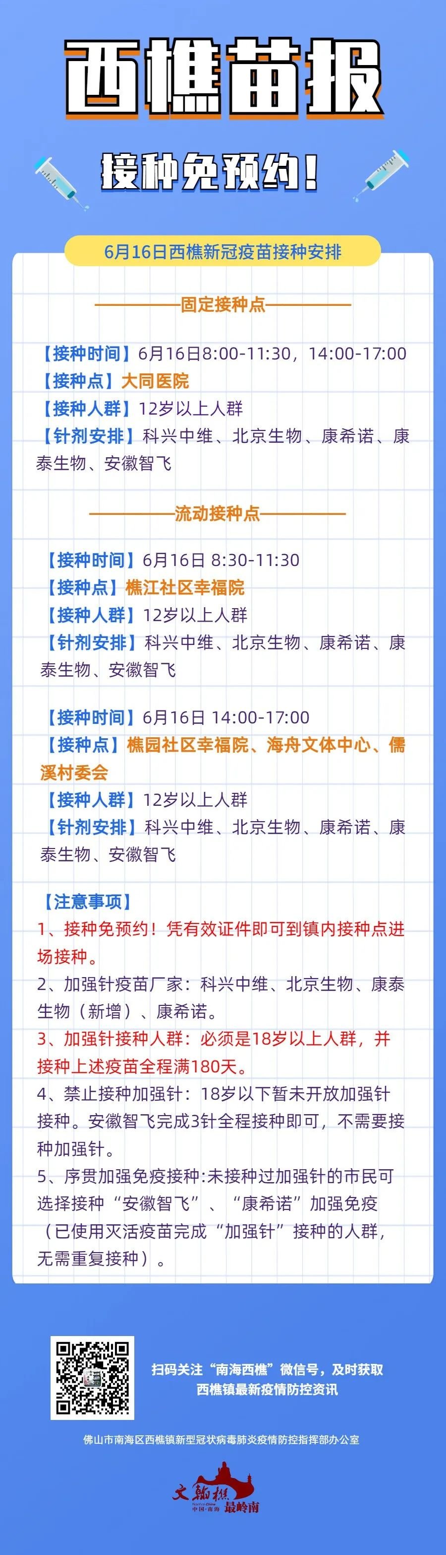 2022年6月16日,西樵有苗,无需预约。具体安排如下: