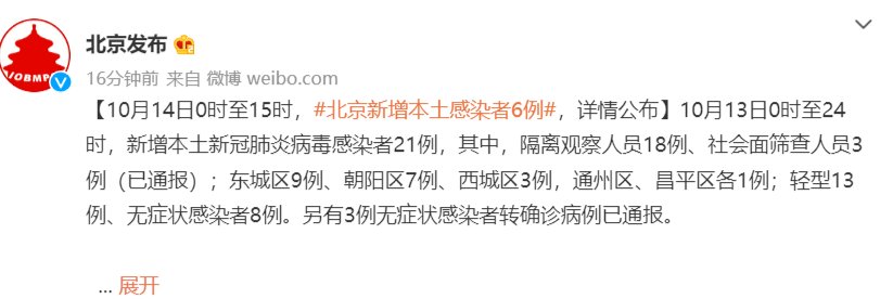 10月14日0时至15时北京新增本土感染者6例详情通报