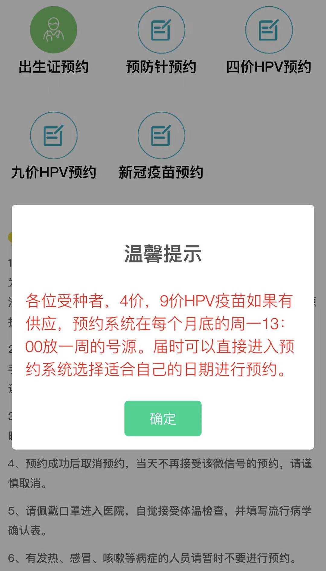 温馨提示:进入预约系统后,点击“九价HPV预约”,如出现以下界面,则说明本周号源已满。