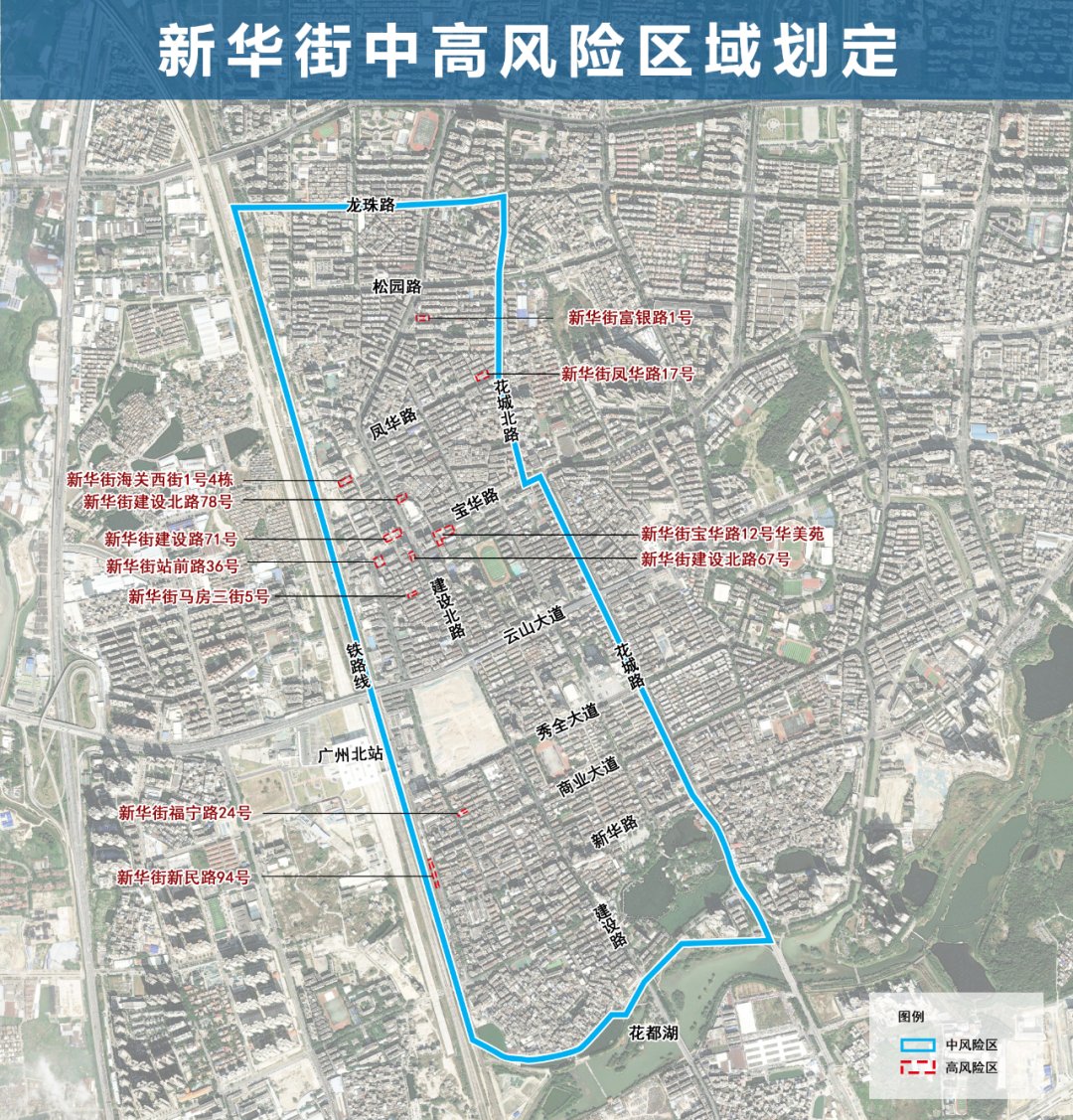 龙珠路以南、花都湖以北、铁路沿线以东、花城路及花城北路以西区域(高风险区除外)