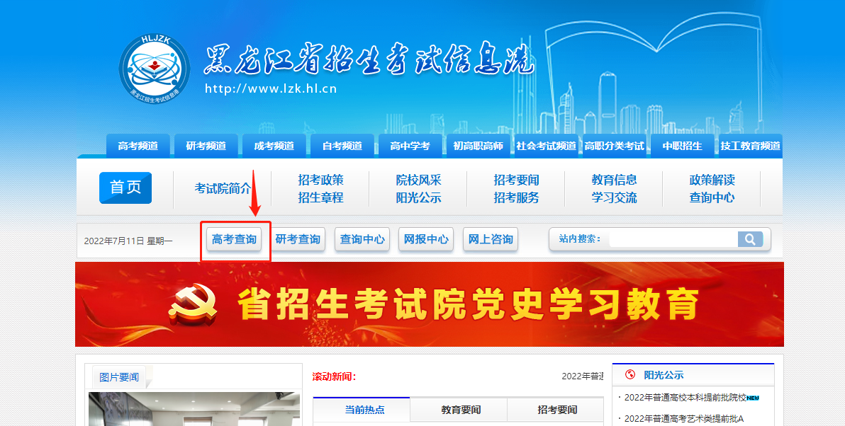 登陆黑龙江招生考试信息港(https://www.lzk.hl.cn/),等到2022年黑龙江高考录取查询系统入口开放,大家点击登录,输入考生相关信息,按照操作步骤,即可查询到2022年高考录取结果。