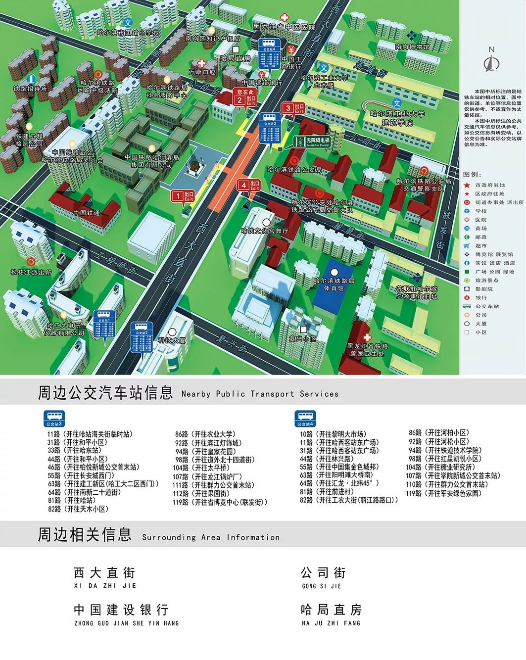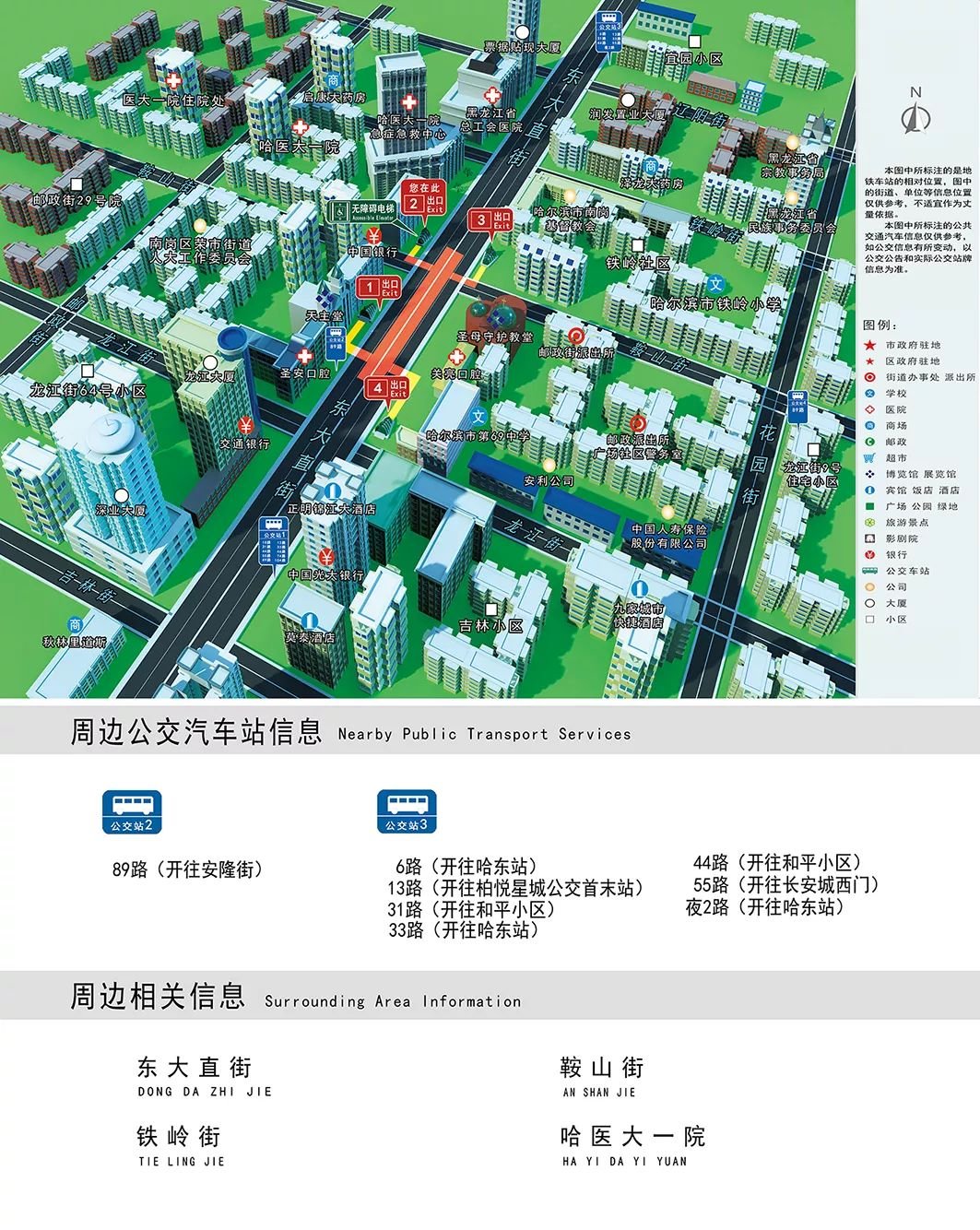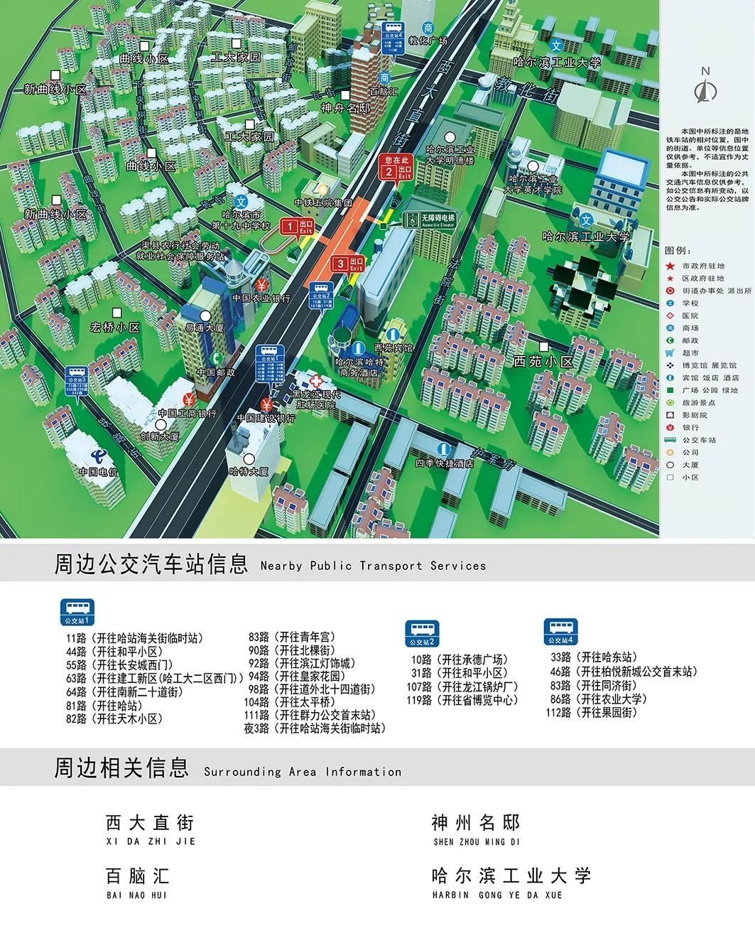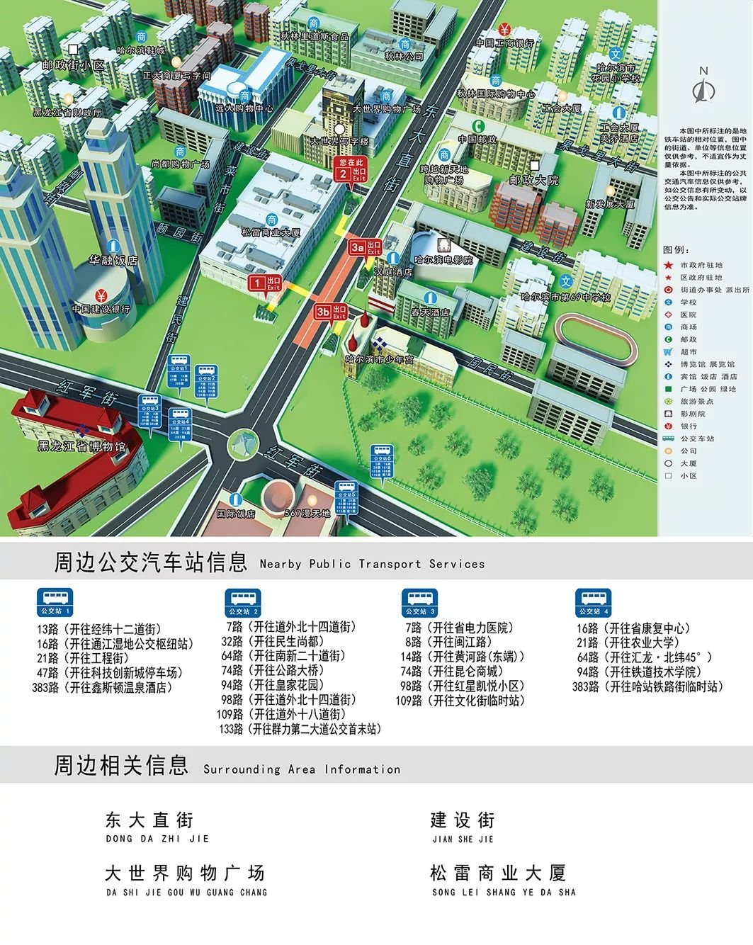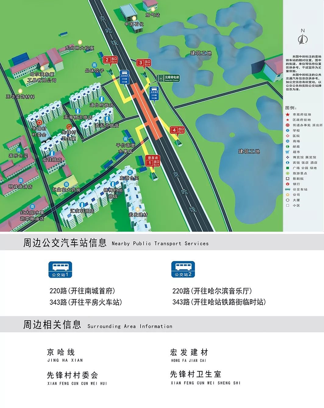 哈尔滨地铁1号线站点出入口详情
