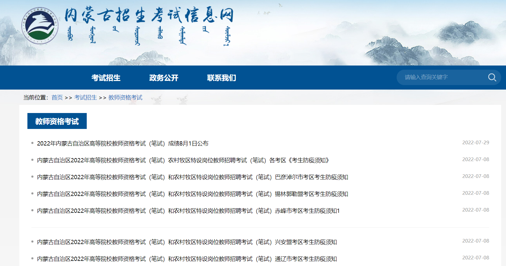 2022年内蒙古自治区高等院校教师资格考试8月1日公布成绩。