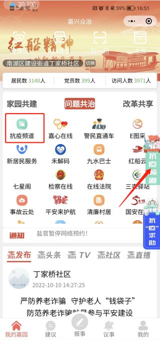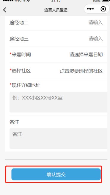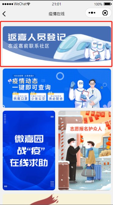 第一步:进入微嘉园小程序-抗疫频道-“返嘉人员登记”