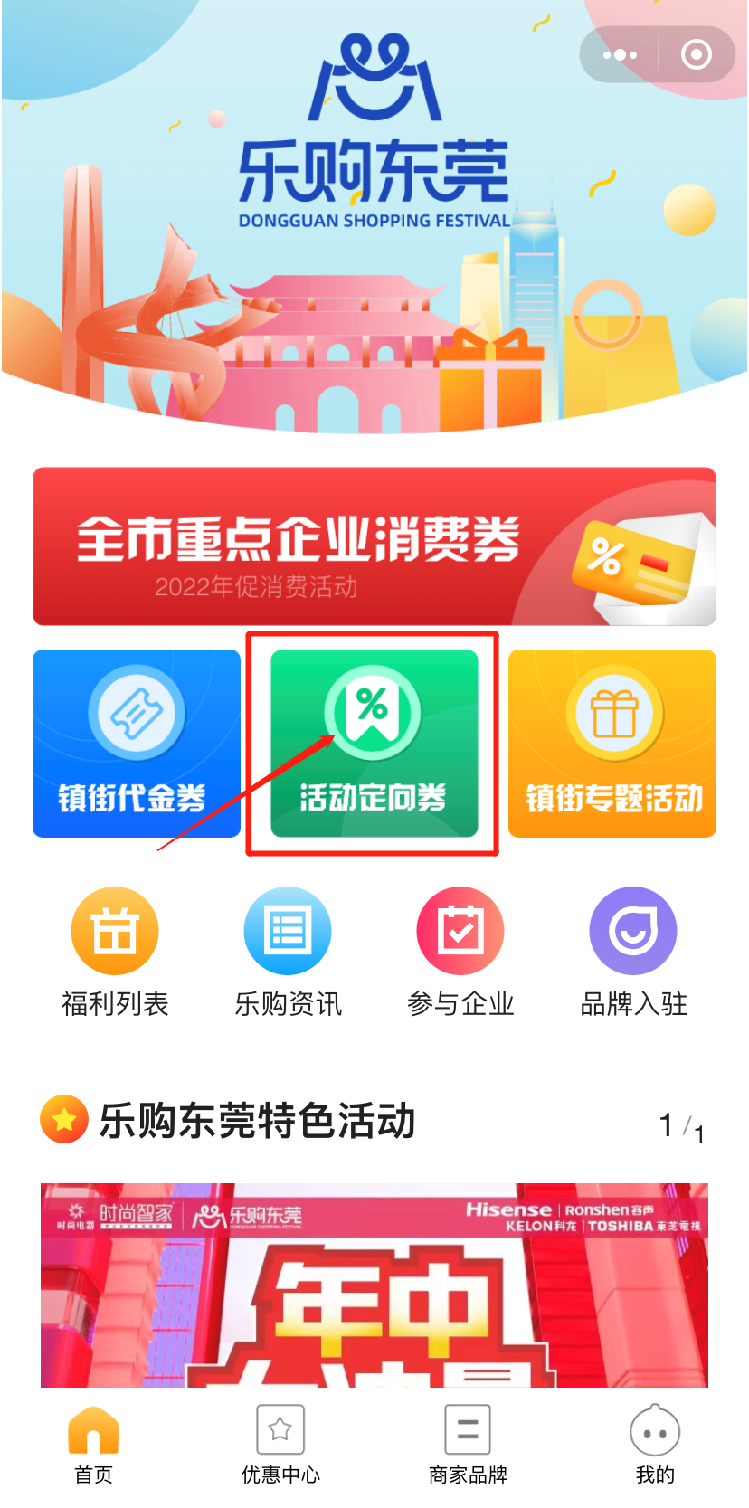 到店购车根据店员指示登记车主信息,由车行报送后台进行派券。已登记信息的车主,次日进入“乐购东莞”小程序,点击首页的“活动定向券”入口。选择购车价对应补贴金额的活动,进入后点击【立即领取】,填写已登记的手机号码并获取短信验证码,验证码输入后点击【确认】领券。