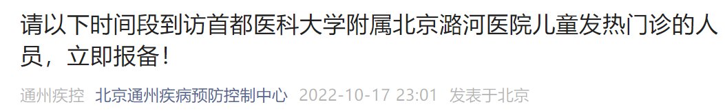 10月16日17日到过北京潞河医院儿童发热门诊人员立即报备