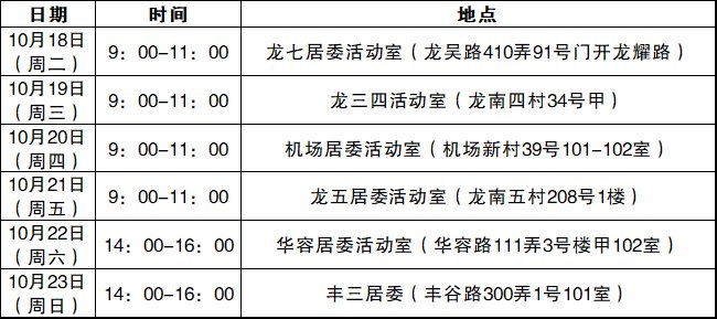 接种时间:10月18日-10月23日(周二至周日)8:00-12:30