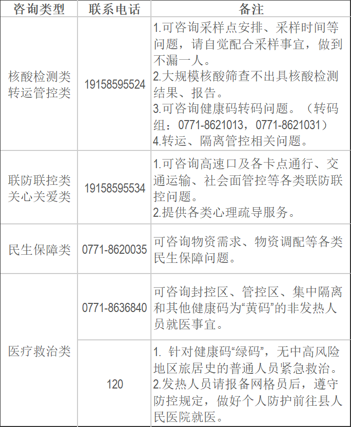 2022年崇左宁明县疫情防控期间便民服务电话