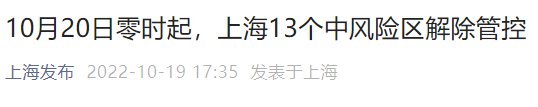 市新冠肺炎疫情防控工作领导小组办公室发布消息:根据《新型冠状病毒肺炎防控方案(第九版)》要求,经研究决定,自2022年10月20日零时起,将以下13个中风险区解除管控:
