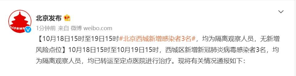 10月18日15时至19日15时北京西城新增3名感染者