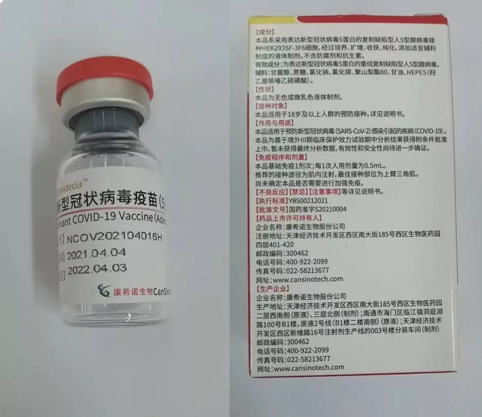 这一疫苗由康希诺生物和中国人民解放军军事科学院军事医学研究院生物工程研究所陈薇院士团队合作研发,于2020年3月16日在全球率先开展临床研究。
