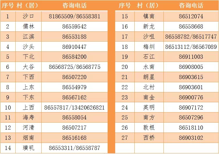 九江镇各村(居)疫苗接种咨询电话↓ ↓