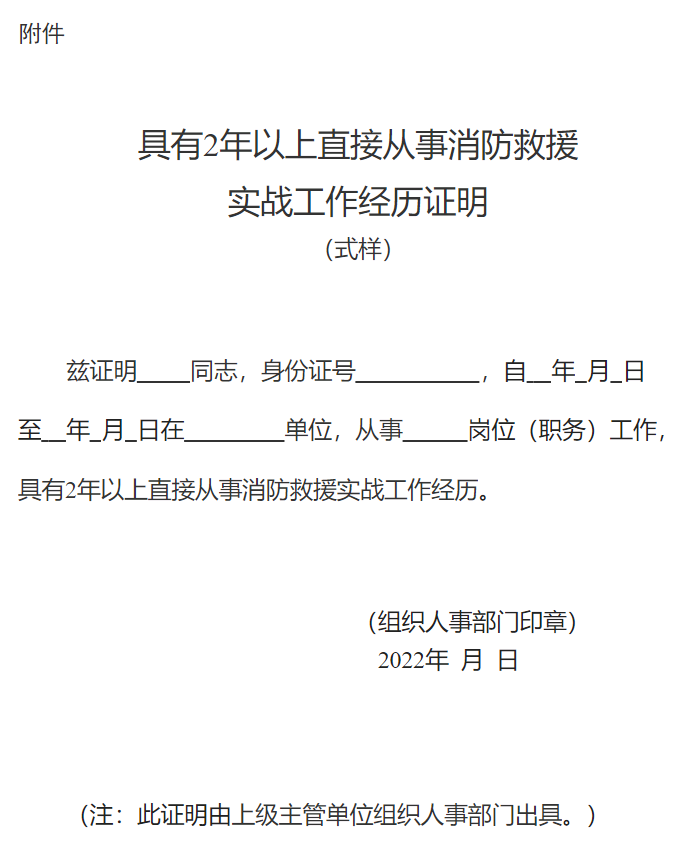 3.政府专职消防队员和政府专职林业扑火队员。年龄放宽至24周岁的,须在基层一线灭火救援岗位(按基层站、队战斗班组人员编组认定)工作,应当具有2年以上直接从事消防救援实战工作经历(相关证明式样见附件)。