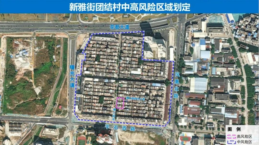 花都大道以南,平石西路以北,曙光大道以东,凤凰北路以西(高风险区除外、不含福达广场)。