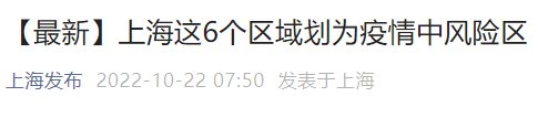 上海6个区域划为疫情中风险区(今天上海疫情风险区域划分)