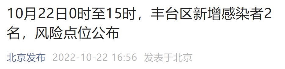 10月22日0时至15时北京丰台新增2例感染者风险点位