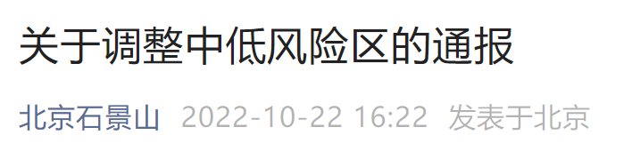 鲁谷路74号院25号楼降为中风险区管控3天,实行“足不出区、错峰取物”,按要求开展核酸检测。鲁谷路74号院24、27、28号楼,26号楼1至4单元以及电子科技情报研究所社区居委会降为低风险区,实行“个人防护、避免聚集”,按要求开展核酸检测,期间尽量少外出、不聚集、不扎堆,外出时做好个人防护。