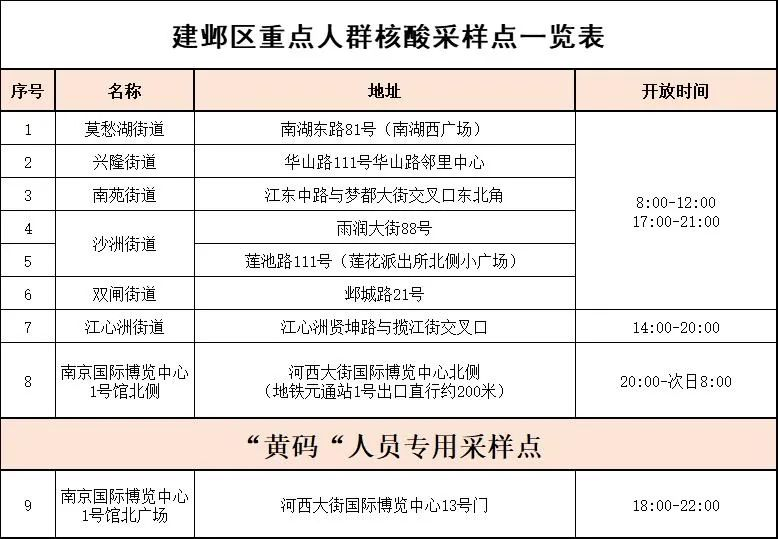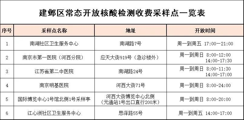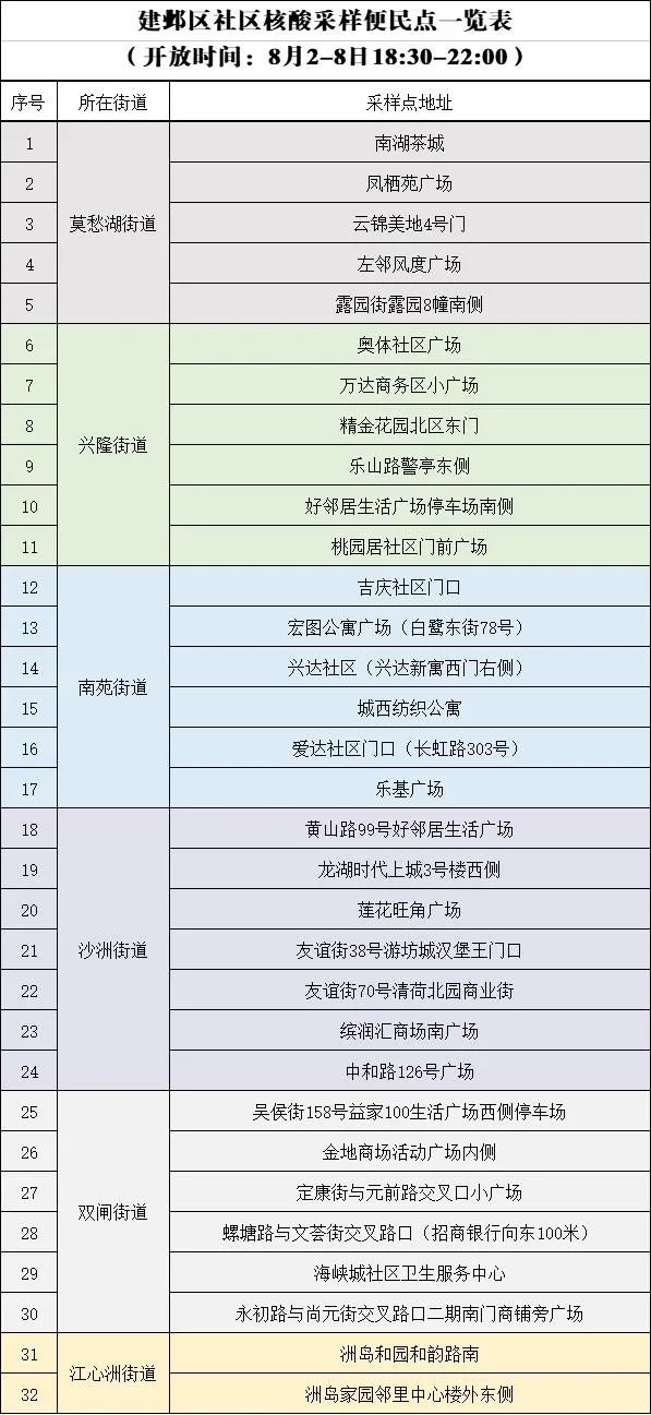 1.建邺区8月2日—8日社区核酸采样便民点一览表