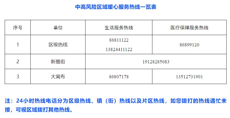 上述区域防控措施按照国家防控要求自发布之日起执行,后续将根据疫情防控形势变化适时调整。区域内居民如遇到生活、就医等困难,可拨打24小时暖心服务热线。