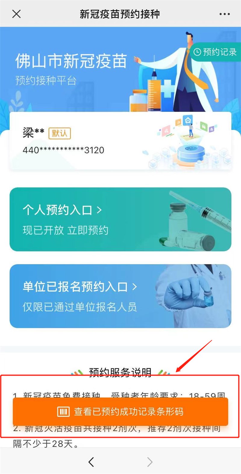 二、佛山卫生健康平台(有苗情况下预约,建议先在村、社区预约登记 ↑ ↑)
