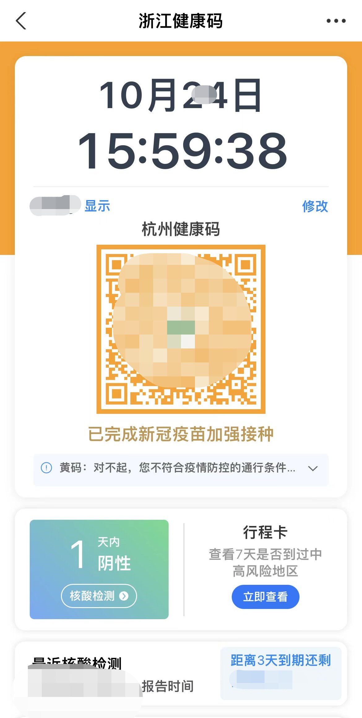 2022杭州健康码黄码图片长什么样子 杭州健康码变黄码