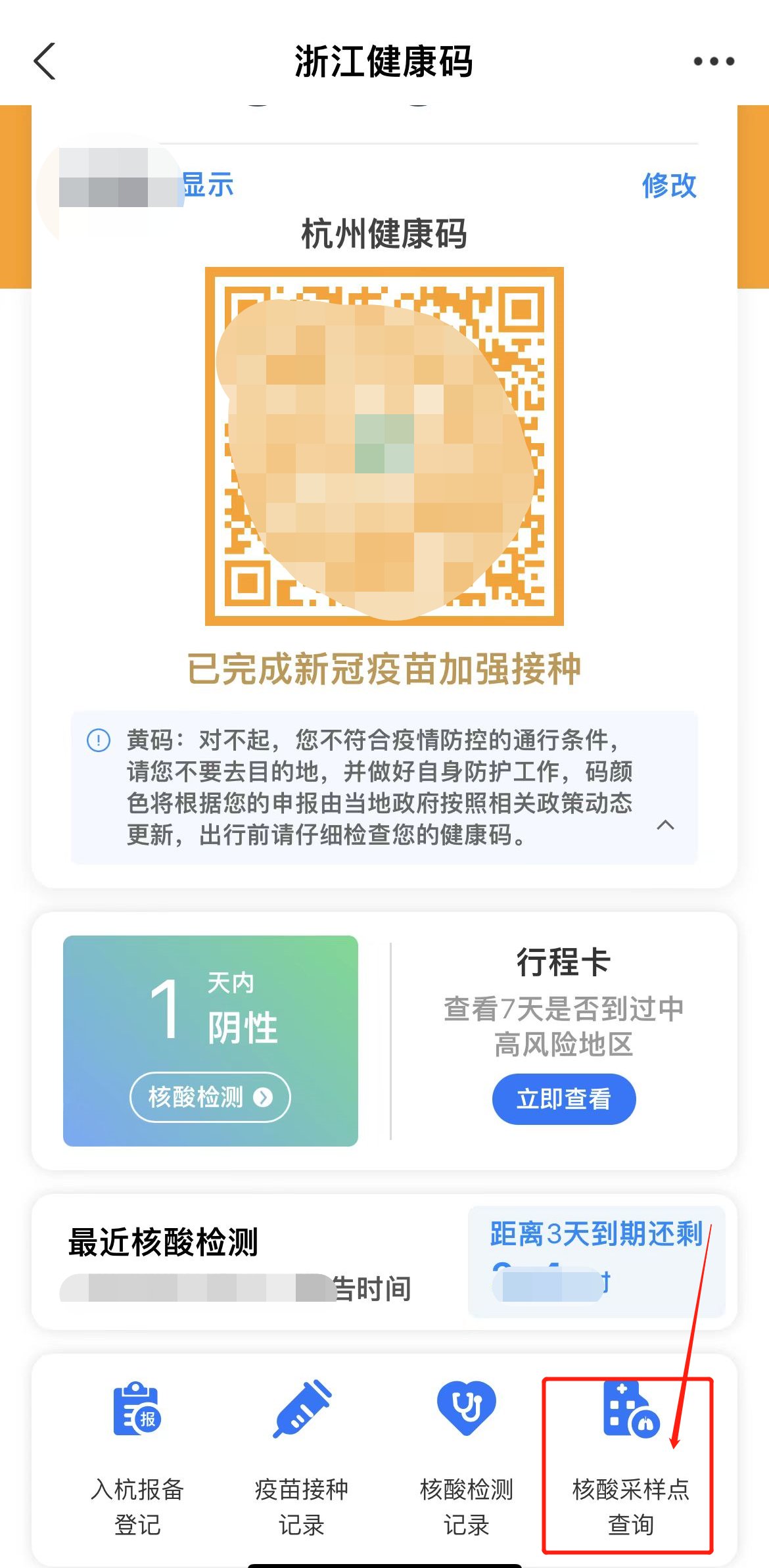 一、打开杭州健康码,下方有核酸点位查询功能。