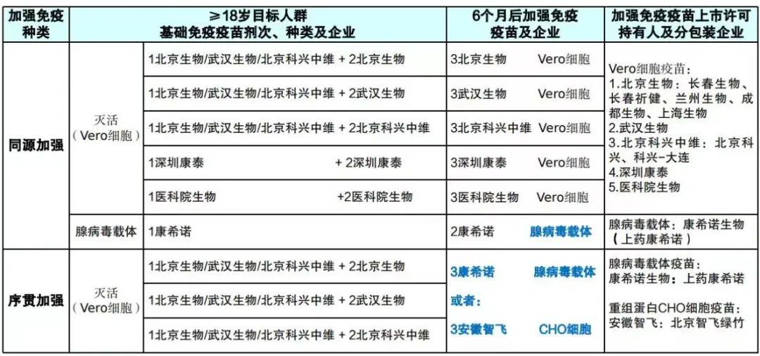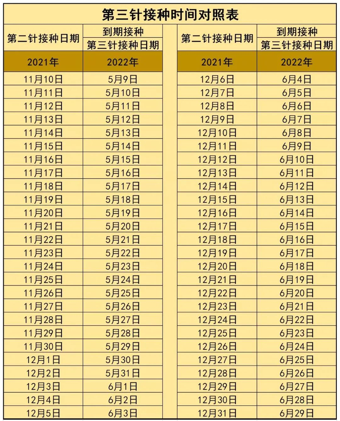 第三针接种时间对照表: