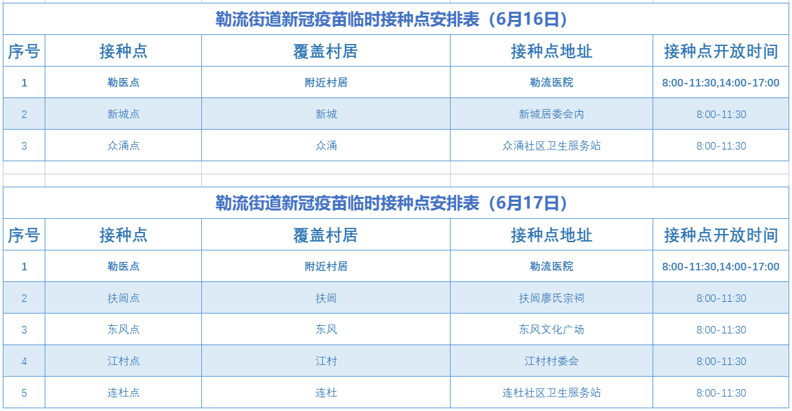 2022年6月16日-17日勒流街道新冠疫苗接种安排: