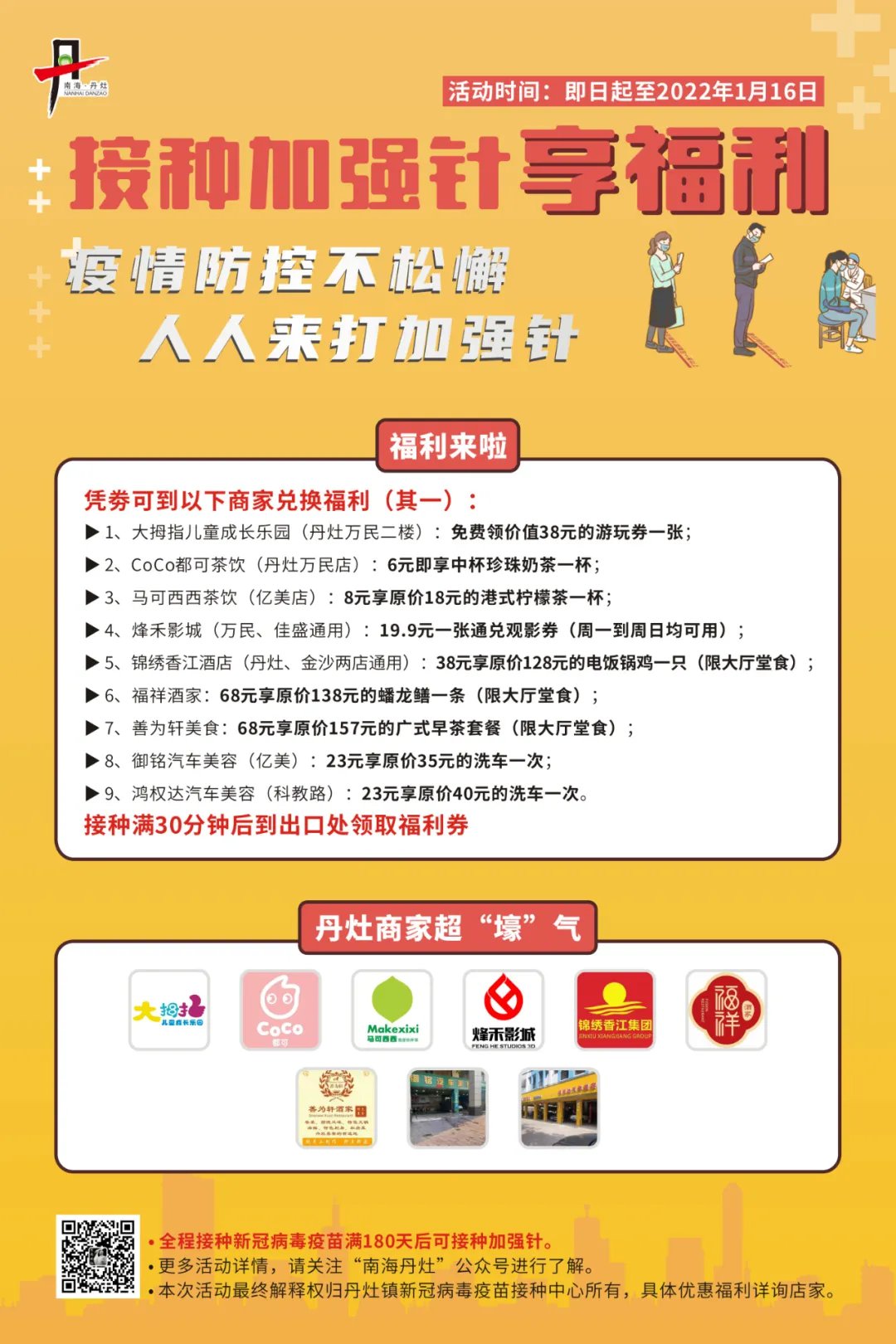活动地点:丹灶镇新冠病毒疫苗接种中心,丹灶镇商家