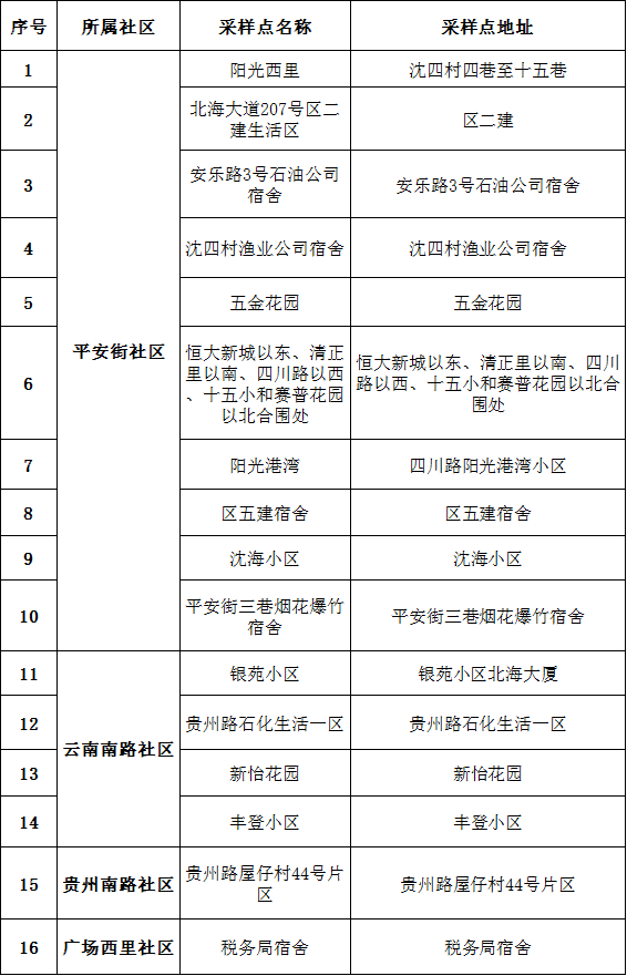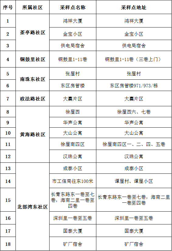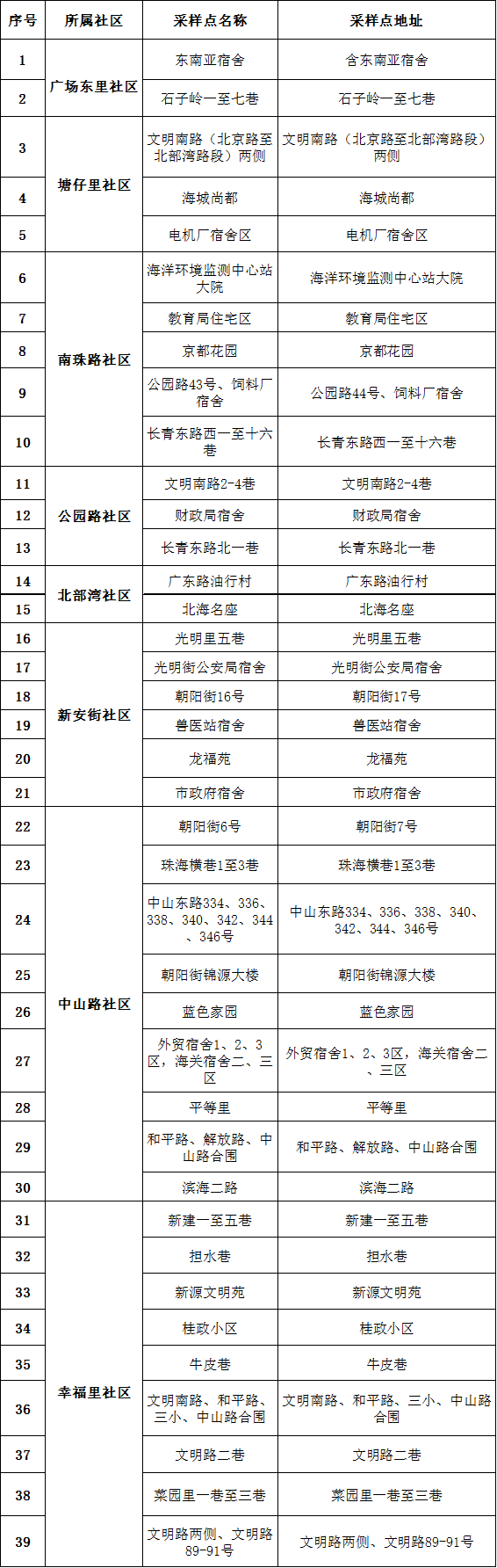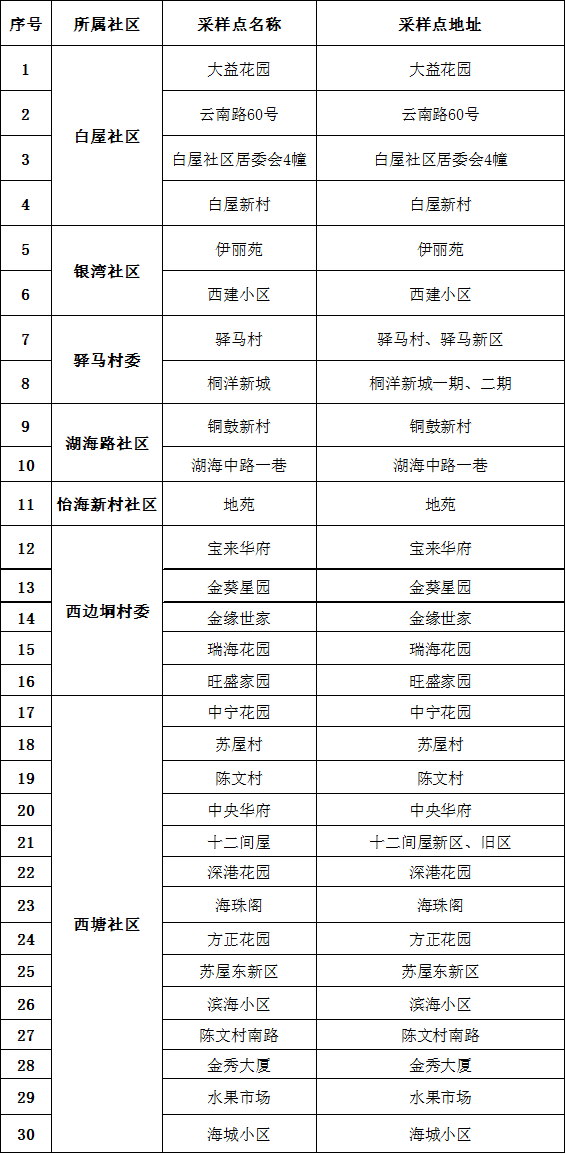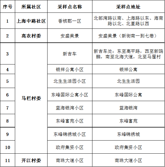 海城区核酸检测点位汇总表