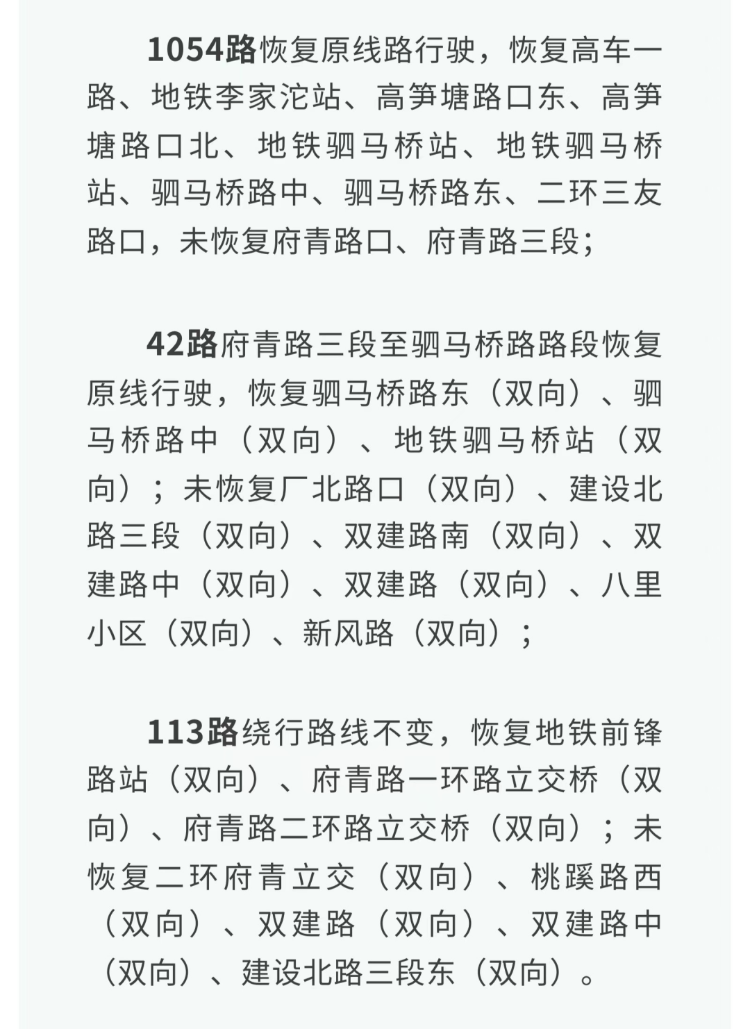按照成华区新冠肺炎疫情防控指挥部最新管控要求,针对府青路街道管控区域调整,市公交集团于8月3日起共计恢复线路12条(全部恢复9条,部分恢复3条),未恢复17条。请市民乘客提前做好出行安排。