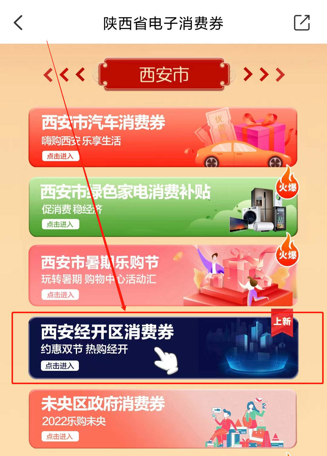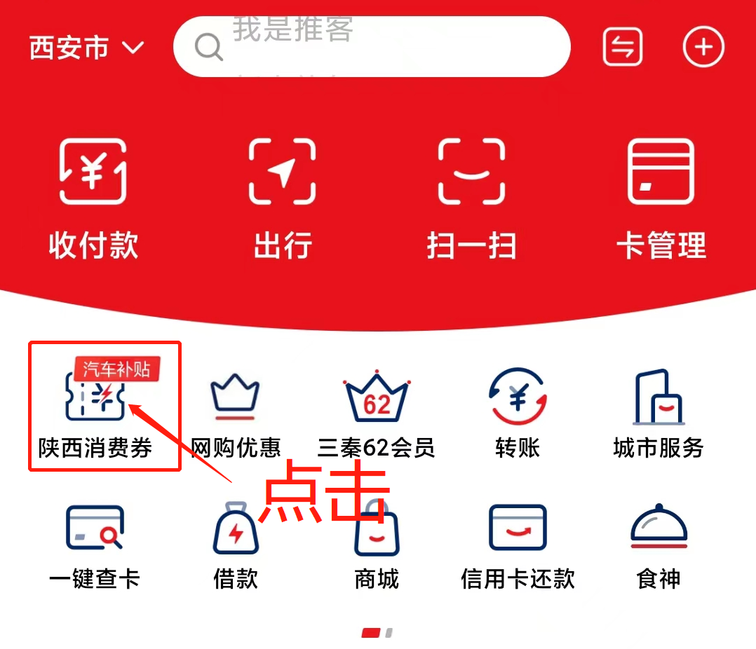第一步:进入到“云闪付”APP页面后,点击“陕西消费券”;