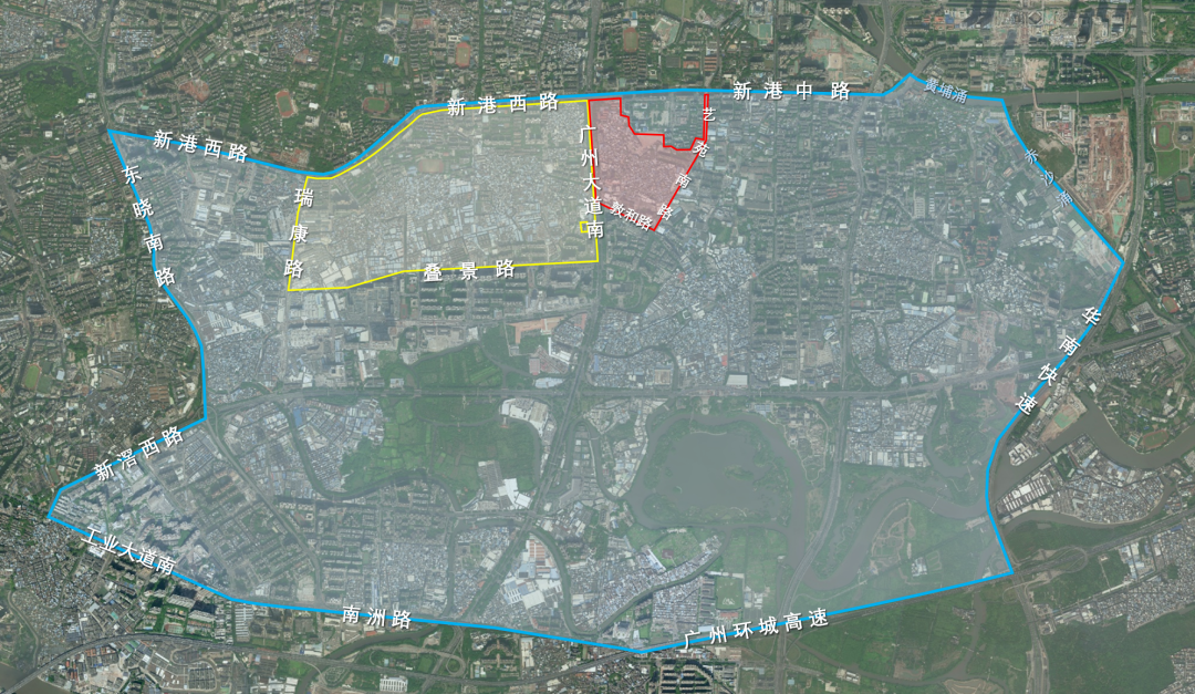 (三)新港西路—新港中路—黄埔涌—赤沙涌以南、工业大道南—南洲路—广州环城高速路以北、东晓南路—新滘西路以东、华南快速路以西围成区域。
