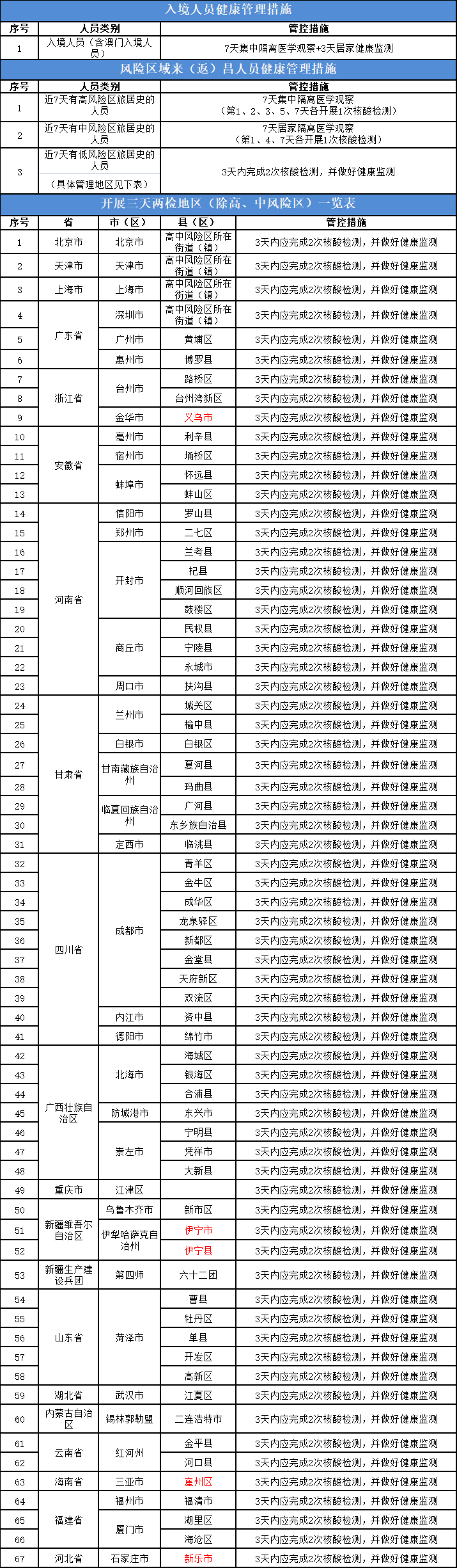 二、来自以下地区的来(返)昌人员严格按照《新型冠状病毒肺炎防控方案(第九版)》要求落实管控措施。