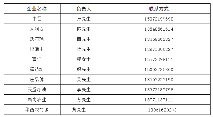 (二)生活物资保供企业:中百、大润发、沃尔玛、悦活里、富迪、福达坊、庄品健、天盛粮油、领尚农业。