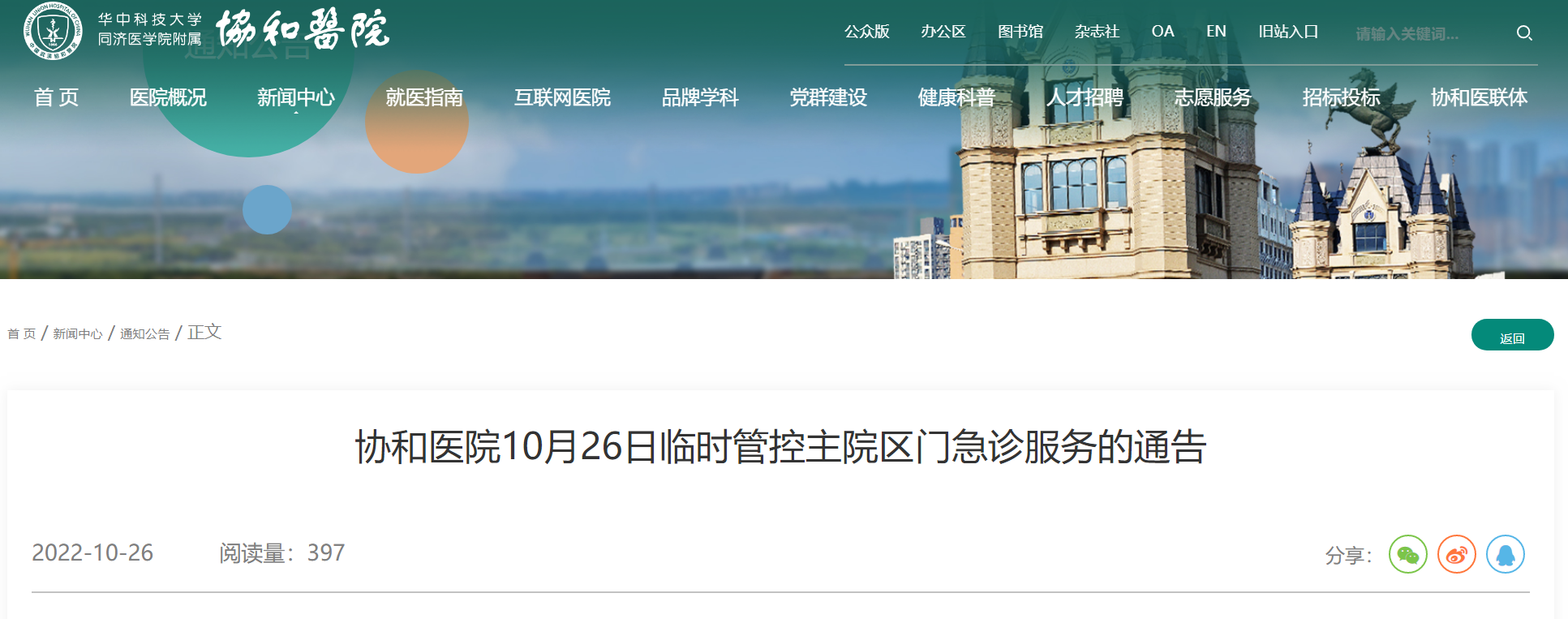 协和医院10月26日临时管控主院区门急诊服务的通告