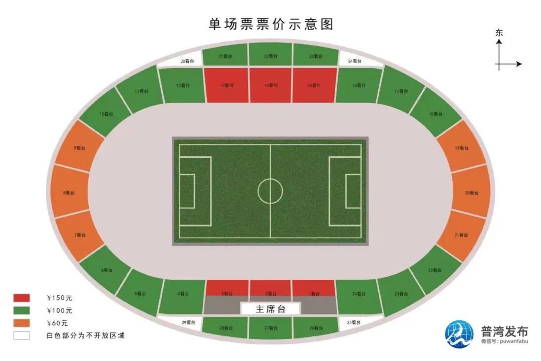 大连普湾体育场2022年中超联赛看台示意图: