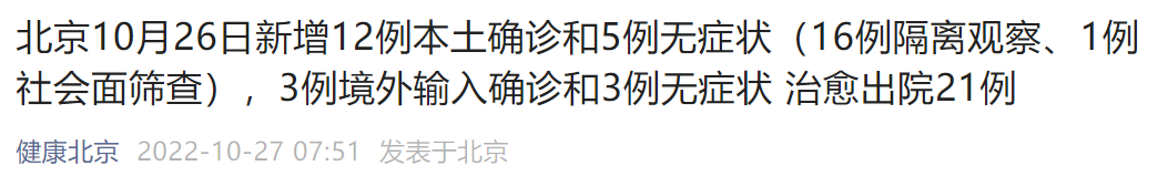 10月26日0至24时北京新增12例本土确诊和5例无症状