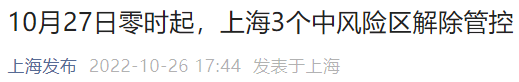 10月27日零时起上海3个中风险区解除管控