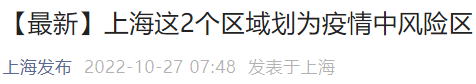 上海2个区域划为疫情中风险区(上海疫情风险区域最新划分)