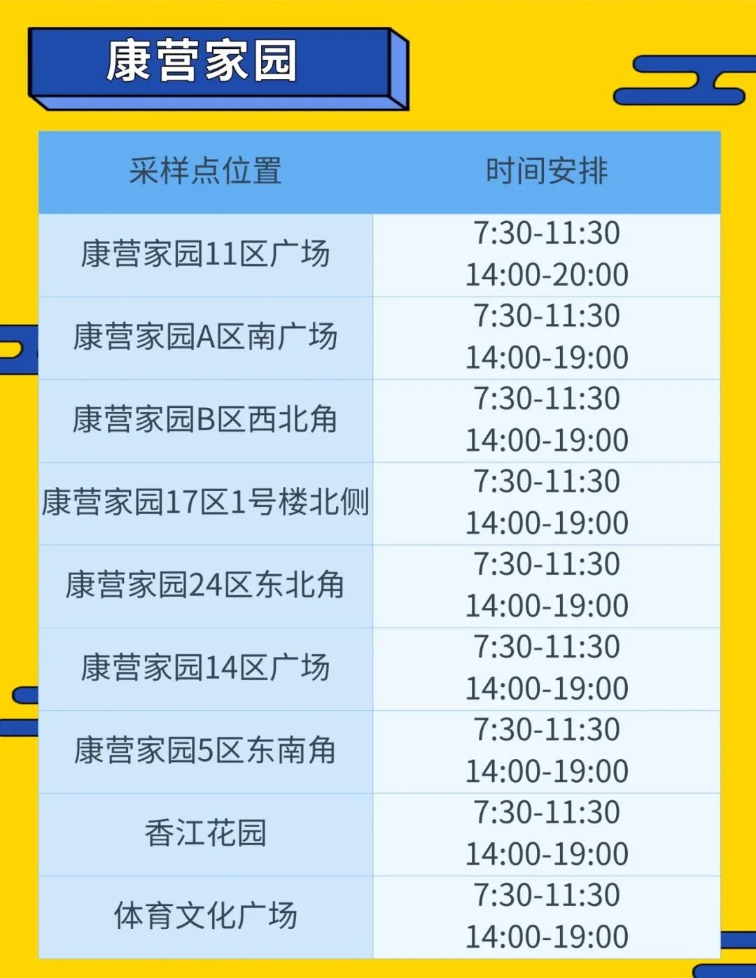 (其中康营家园11区广场、中粮瑞府西门、瑞榆园C区结束时间为20:00)