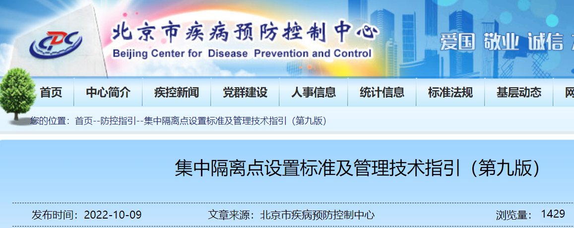 北京疾控发布集中隔离点设置标准及管理技术指引(第九版)