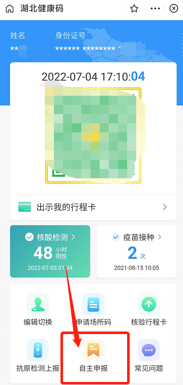 3、申请湖北健康码后,在湖北健康码页面下方会有“自主申报”选项,点击进入;